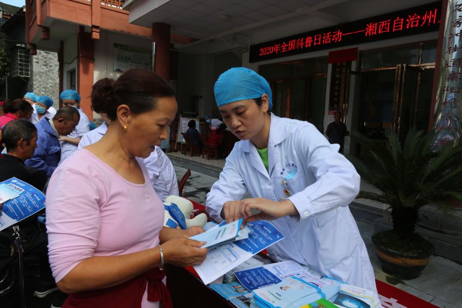 在2020年全国科普日到来之际,我院第二党支部结合疫情防控工作和专科特色,围绕“科学抗疫 守护健康”主题,于2020年9月18日在吉首寨阳村开展了慢性病科普知识走进新农村的党建活动。
