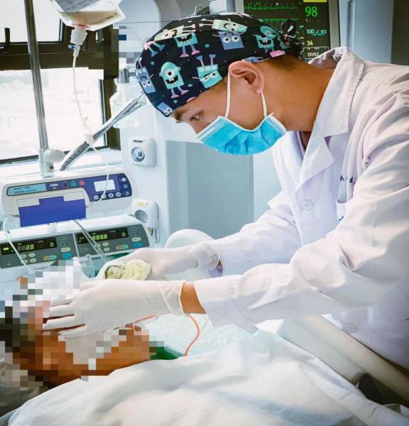 患者张阿姨今年52岁,古丈县人,既往体健,入院前4天因收稻谷找野生菌后夜间出现发热伴下肢肌肉酸痛、全身乏力,由县级医院转入我院治疗。入院时R:40次/分,SpO2:65%,降钙素原:27ng/ml;脑钠肽:10000pg/ml;急性病容,双肺呼吸音低,双肺闻及湿性啰音。诊断显示:重症肺炎、呼吸衰竭、急性呼吸窘迫综合征,立即予告病危,重症监护,高流量氧疗给氧支持,抗感染、化痰、抗炎减轻感染中毒反应、护心等治疗。