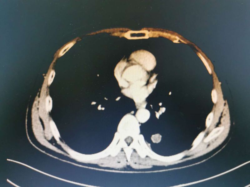 患者男性,51岁,因“反复胸闷”入我院心血管内科住院治疗,完善检查发下左下肺占位,经我科医师会诊后考虑“左下肺占位:恶性肿瘤可能性大”建议积极手术治疗。转入我科后予积极完善术前检查,经充分术前准备及术前讨论评估后在黄勇科主任为首的心胸外科团队努力下成功实施了单操作孔VATS下左下肺叶切除术并进行了系统淋巴结清扫,手术非常顺利,出血甚微。