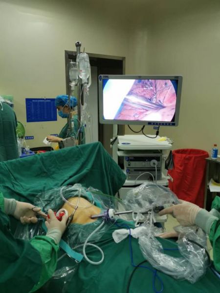 近年来,在上级院领导支持下,科主任黄勇带领下我院心胸外科团队已顺利的完成了胸外科手术从胸腔镜辅助到全腔镜,从多操作孔到单操作孔、单孔的转变,得到了极大发展,胸部微创手术技术走向成熟。已广泛开展了各类胸腔镜微创手术术式,如:肺癌根治术、肺小结节切除术、肺大泡切除术、肺段隔离症切除术、纵隔肿瘤切除术、胸腺瘤扩大切除术、胸膜活检术、手汗症手术等微创手术方式,给广大患者带来了福音。