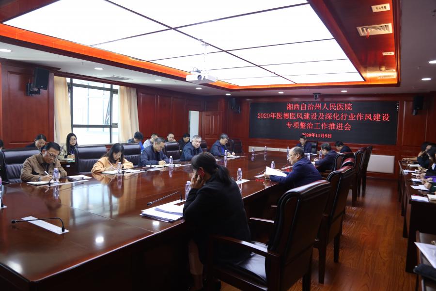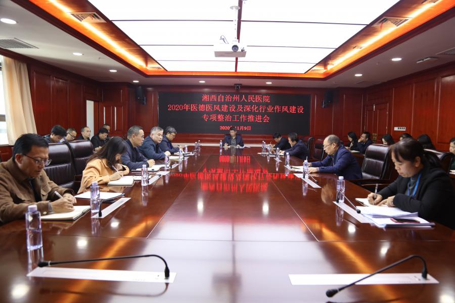 为了巩固医德医风专项整治活动成果,持续纠正医疗行业不正之风,规范医务人员廉洁行医行为,11月9日,湘西州人民医院召开医德医风建设及深化行业作风建设专项整治工作推进会。院党委书记彭剑涛主持会议,在家院领导及相关职能科室负责人、各总支部书记参加会议。