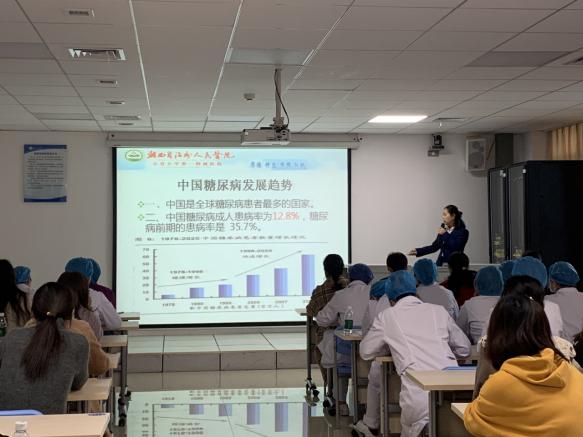 为响应联合国糖尿病日“护士与糖尿病”的主题号召,强化护理工作者在糖尿病健康管理中的重要作用,护士和医生一起引领和鼓励群众积极、主动参与糖尿病的预防与自我管理,有效干预糖尿病危险因素,提高糖尿病患者自我管理能力。11月19日,湘西州人民医院护理部举行糖尿病专科护理小组第四季度活动——联合国糖尿病日。护理部相关负责人、各科室护士长、联络员参加活动。