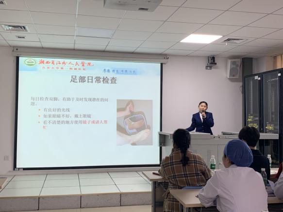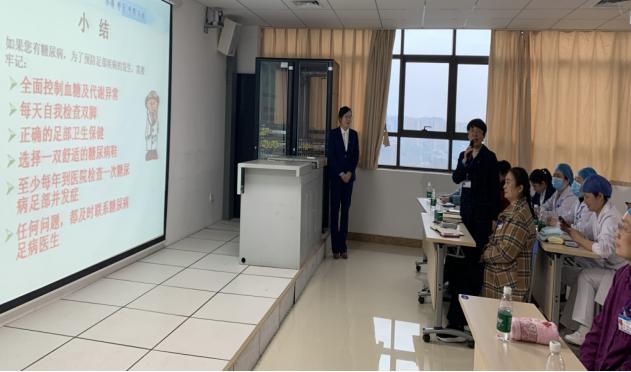 本次活动内容围绕糖尿病足的防治开展。据介绍,糖尿病足是糖尿病慢性并发症之一,它严重影响了患者的生活质量,作为医护人员应积极做好防治工作。