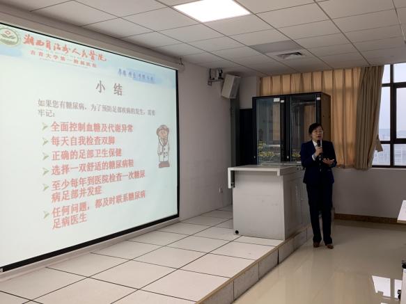 活动现场由糖尿病护理专家分别讲述糖尿病足的流行病学特征、糖尿病足筛查以及糖尿病足的临床表现、分级、治疗、护理,授课内容丰富,图文并茂,深入浅出地为大家展示了糖尿病足的危害性及防治知识,大家听后受益非浅。同时,活动还设置了有奖问答环节,大家积极踊跃参加,热情高涨。
