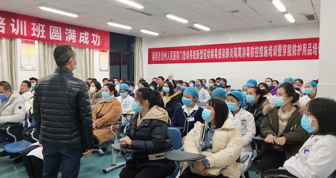 为了更有效防范和积极应对秋冬季可能出现的新冠肺炎疫情,提高医疗质量和保障医疗工作与医务人员的安全,2020年11月底至12月中旬,湘西州人民医院门诊系统所有医护技等工作人员前后分为五个批次进行新型冠状病毒感染肺炎隔离消毒防控措施培训暨穿脱防护用品培训。参加培训学习的有CT室、放射科、检验科、病理科、核医学科、高压氧室、皮肤科、输血科、康复理疗科、胃镜室、口腔科门诊、超声科、疼痛科门诊、核磁共振室、脑电图、碎石中心、心功能科、门诊办全体医护人员、各防控点护士、核酸点护士、服务中心、保洁员等。