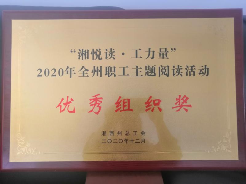 “湘悦读、工力量”2020全州职工主题阅读活动优秀组织奖