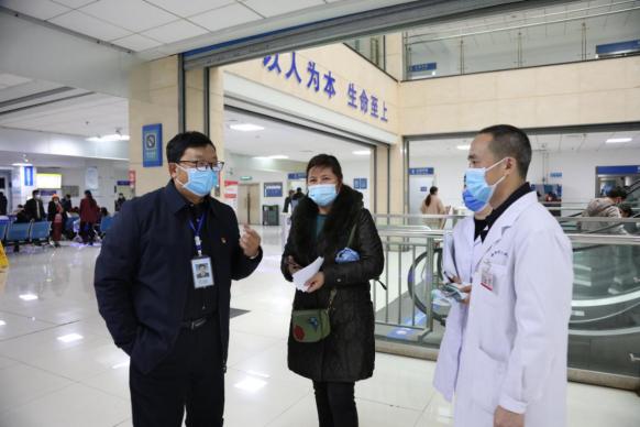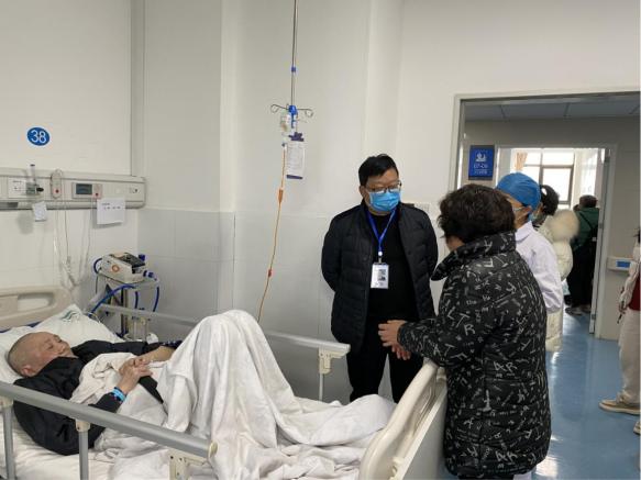 走访住院患者 在对老院区的督查中,田茂友认真听取了健康管理中心负责人的工作汇报,对科室通过开展“四比四看”文明服务活动整改后展现的工作面貌给予了肯定,并与全体工作人员就如何做好服务工作进行了一次生动讨论。田茂友指出,健康管理中心作为医院的一个窗口科室,对于亚健康状态的体检人员服务具有其特殊性,我们更需要具有团队协作精神,常怀敬畏之心,勇于担当责任,不断拓展健康管理服务领域,使科室的工作再上一层楼。