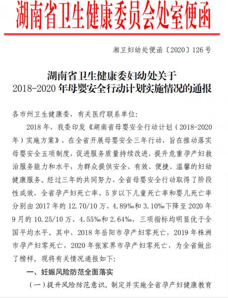 湖南省卫健委自2018年在全省开展母婴安全三年行动,湘西州人民医院作为湘西地区的区域医疗中心、危重孕产妇救治中心,积极响应并踊跃参与此项活动,认真按照行动计划要求,全面落实母婴安全五项制度,全面开展妊娠风险防范、危急重症救治、质量安全管理、专科能力建设、便民优质服务5大行动,全面促进服务质量持续改进,全面提升危重孕产妇救治服务能力和水平,为群众提供安全、有效、便捷、温馨的妇幼健康服务,全力保障了母婴安全。