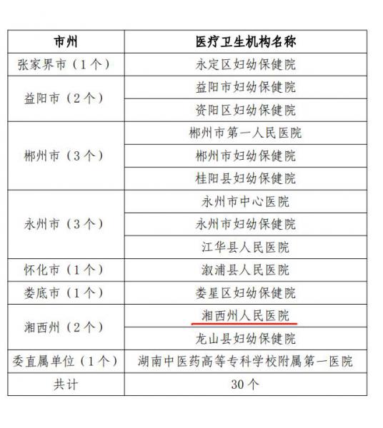 近日,湖南省卫生健康委发布《关于2018-2020年母婴安全行为计划实施情况的通报》,对全省母婴安全优质服务单位予以表扬。湘西州人民医院位列其中,获得“省级母婴安全优质服务单位”荣誉。