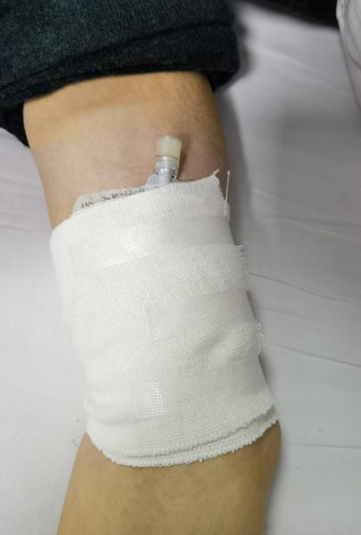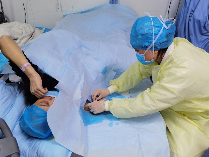 12月31日,患者陈某某,为晚期食管癌全身多处转移病人,既往接受过放化疗,血管条件极差,外周静脉穿刺难度极高。因该患者近3-4日不能进食水,营养状况极差,只能通过肠外营养来满足机体需求。经普三科护士长张帆会诊后,决定采取“B超引导下改良塞丁格技术”为该患者置入PICC导管。