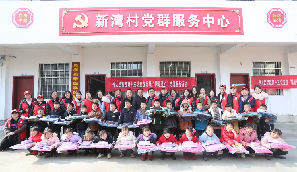 第十三党支部全体党员来到凤凰县新湾村,慰问村里23位留守儿童,送上新年祝福。