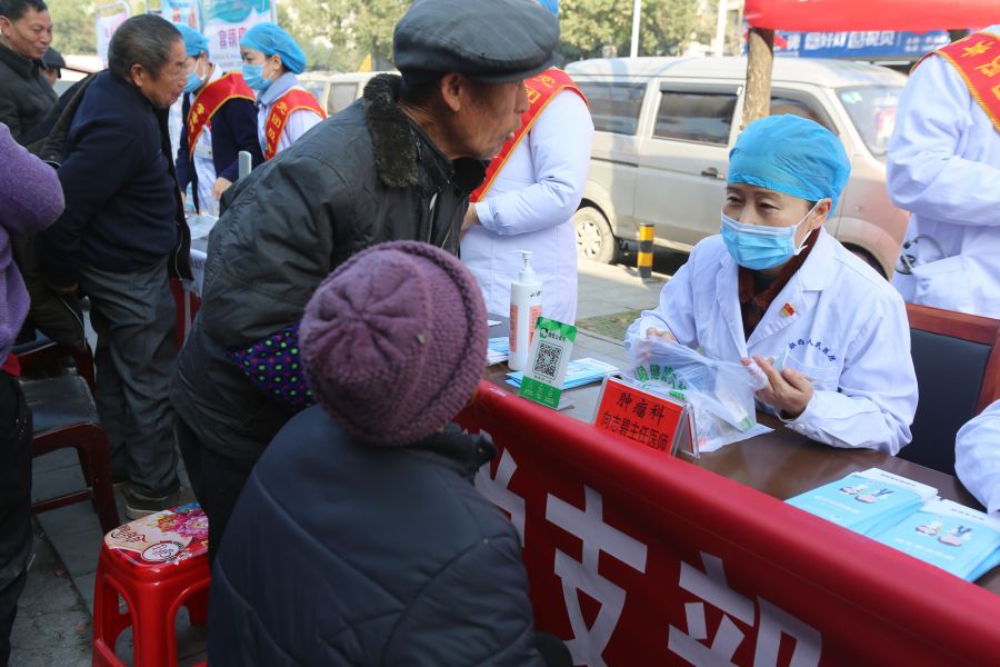 1月12日,第一党支部组织30名专家来到乾州农贸市场,开展肿瘤、肾脏、血液、老年疾病等多个专科的健康义诊,向群众宣讲疫情防控期间的健康知识。