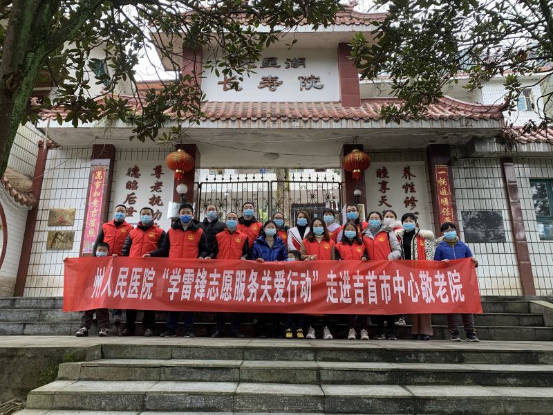 第五党支部志愿者到吉首市中心敬老院为老人检查身体、送慰问金。