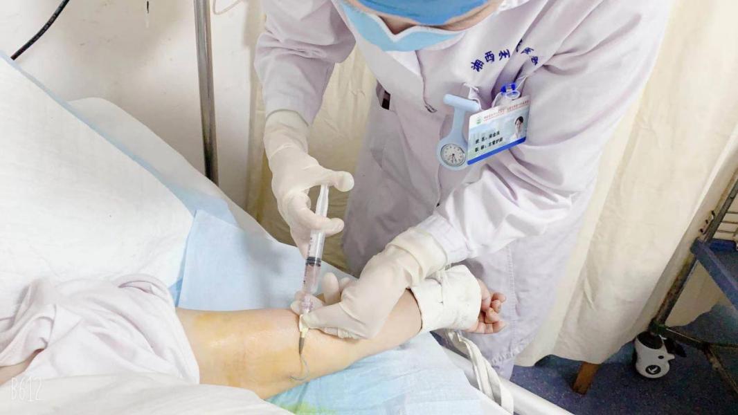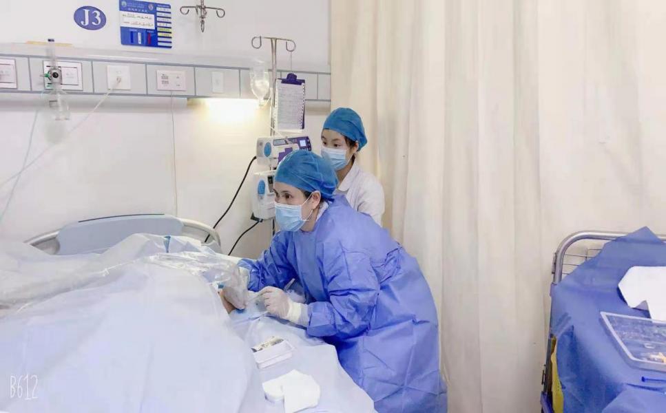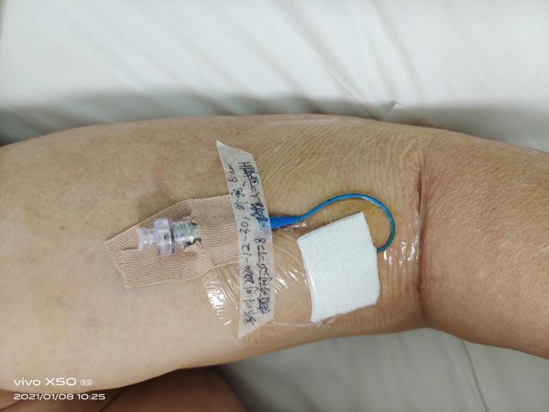 2020年11月18日,神经内一科患者胡某某因病情危重、外周血管条件差,输注多种等渗性、高渗性、刺激性较大的液体,发生静脉炎,输液肿胀等风险被无限放大,护士长充分评估患者病情及血管后,取得医生及家属的知情同意,进行了我院首例中等长度导管的置入,穿刺顺利,使用49天后出院拔管,未有并发症的发生。