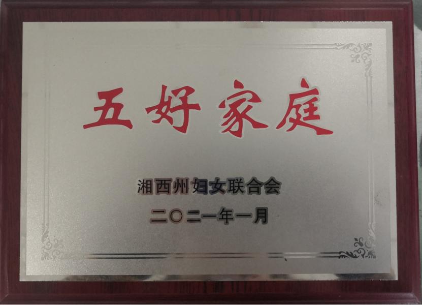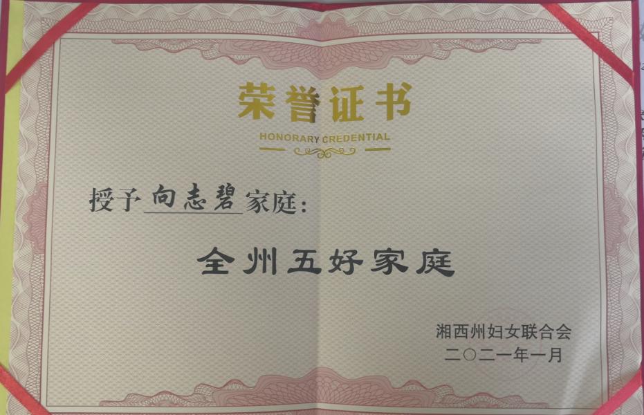 向志碧喜获2020年湘西州五好家庭光荣称号
