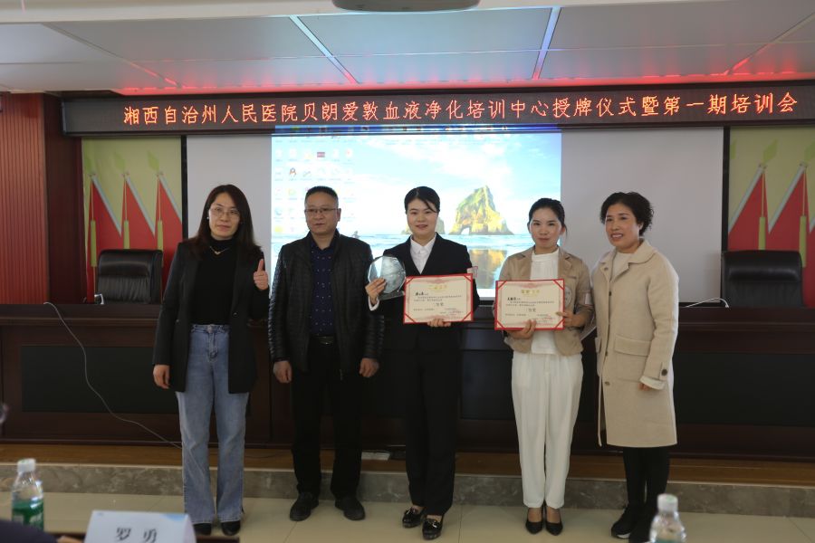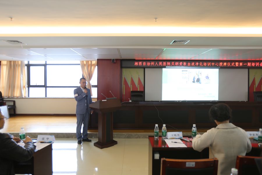 为进一步提升血液净化领域医护工作人员业务水平及管理技能,为湘西州广大患者提供更优质的医疗服务。3月13日至14日,湘西州人民医院贝朗爱敦血液净化培训中心授牌仪式暨第一期培训会在州人民医院举行。州人民医院副院长罗勇、护理部、血液净化中心、肾内科负责人及相关专业医护人员100余人参加本次活动。