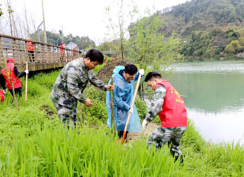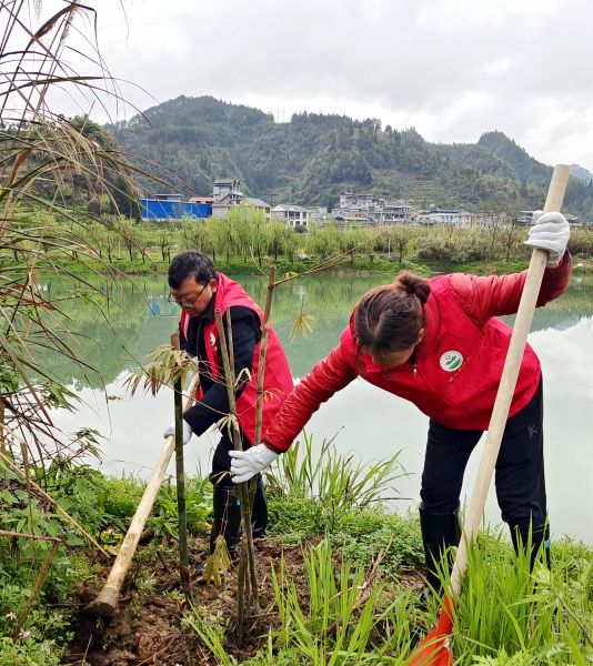 3月17日,湘西州人民医院到吉首市曙光村水坝上游沿河风光带开展植树活动。