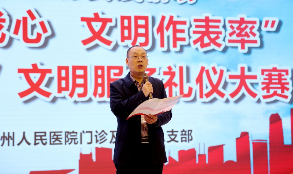 为迎接建党100周年,感党恩、讲党性、争先锋、促发展,规范职工礼仪行为,提升“窗口”服务质量,4月8日,湘西州人民医院门诊及儿科党总支部开展党史学习教育实践活动之“党旗在我心,文明作表率”“四比四看”文明服务礼仪比赛。院领导彭剑涛、黄纯海、贾小卷、田茂友、罗勇,各党总支部书记、相关职能科室负责人受邀参加并担任评委。