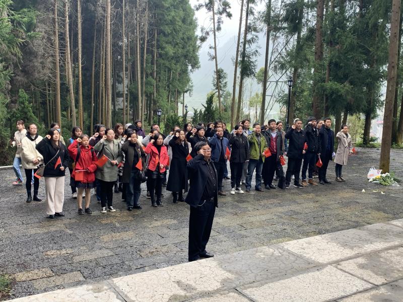 在龙山县茨岩塘革命根据地旧址,门诊及儿科总支一行53人,向革命烈士敬献花篮和鲜花,默哀鞠躬,瞻仰了革命烈士墓碑,聆听了英烈事迹,重温入党誓词,坚定有力的誓言回荡在苍松翠柏之间。