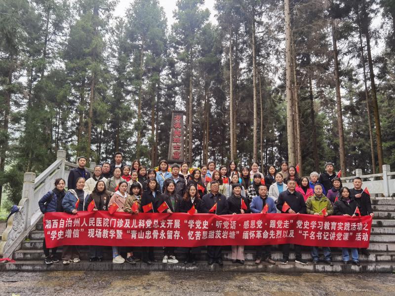 在永顺县塔卧镇革命根据地旧址,外科总支60多名党员齐聚红二六军团烈士纪念碑前,为烈士祭扫、献花,重温了入党誓词响彻云霄。