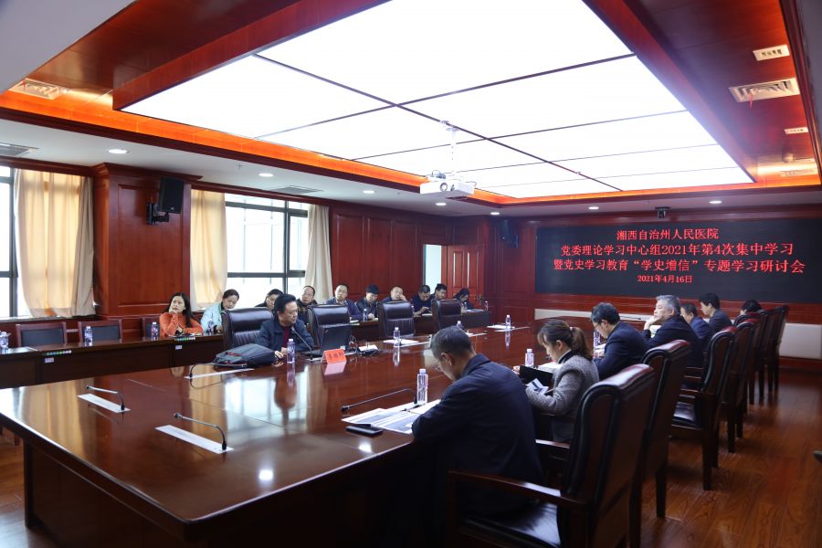 4月16日,州人民医院党委召开党委理论学习中心组2021年第4次集中学习暨党史学习教育“学史增信”专题学习研讨会,州委党史研究室李雄野副主任作专题辅导,在家院领导参会并逐一作研讨发言,州委党史学习教育第十一巡回指导组组长谢深双、副组长向艳红、成员陈婧到会指导点评。
