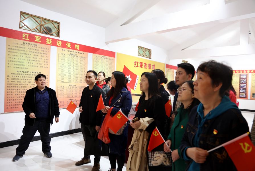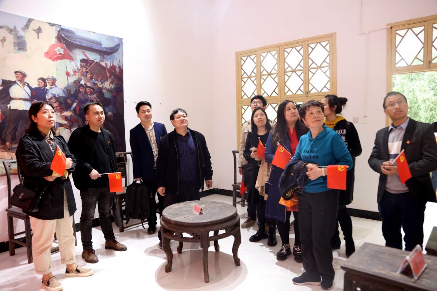 全体党员干部站在中国工农红军烈士纪念碑前肃立缅怀先烈、敬献花篮、瞻仰纪念碑、重温入党誓词,表达对革命烈士的崇高敬意,并参观了苏维埃乡政府纪念馆,聆听红色故事。