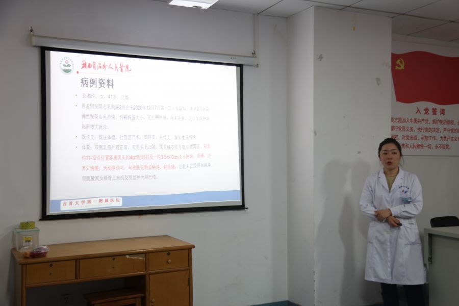 “乳腺癌是中国女性最常见的恶性肿瘤,我科年平均收治肿瘤癌患者约200余例,湘西地区地处偏远,局部晚期及晚期乳腺癌患者相对偏多,”乳甲外科主任唐培志介绍道:成立多学科会诊的MDT治疗模式有助于实现个体化肿瘤综合治疗,提升诊疗水平和患者就医服务舒适度。