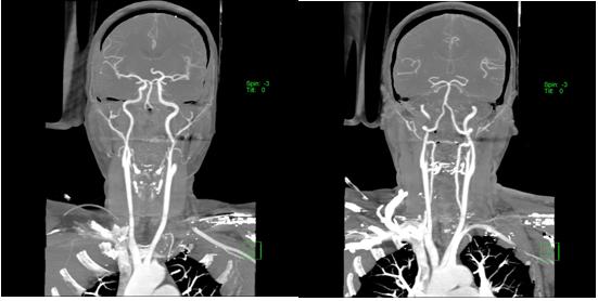 按照“先诊疗,后付费”救治原则,脑卒中救治医生全程陪护,第一时间完成头颈部CT血管成像,可以明确闭塞的基底动脉完全再通,随即收治入神经内一科重症病房,通过后续治疗,患者病情好转,生活恢复正常。
