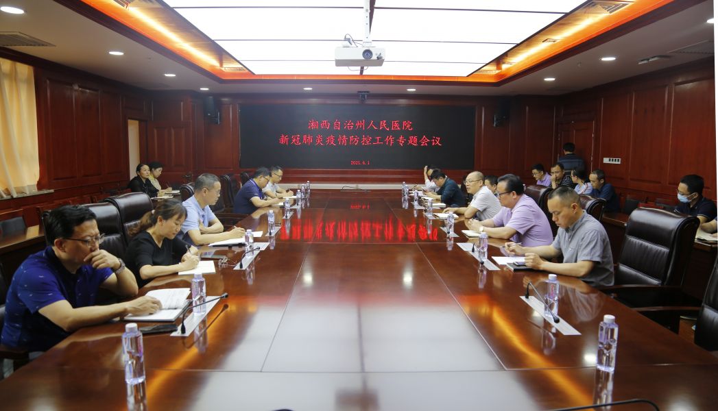 6月1日上午,根据最新疫情形势,湘西州人民医院院长黄纯海主持召开新冠肺炎疫情防控专题工作会议,部署安排近期疫情防控工作。在家院领导贾小卷、田茂友、莫莉萍、罗勇、向平、江宏冰、梁民勇,及党办、院办、医务科、护理部、院感科、门诊办、传染病管理科、保卫科、总务科、设备科、检验科、宣传科等科室负责人参加会议。