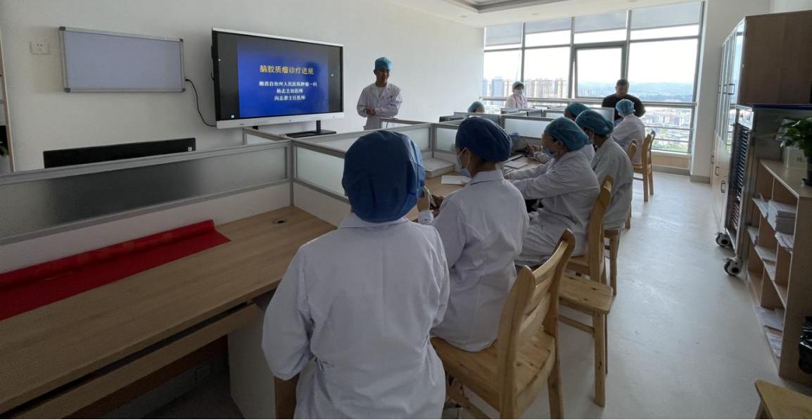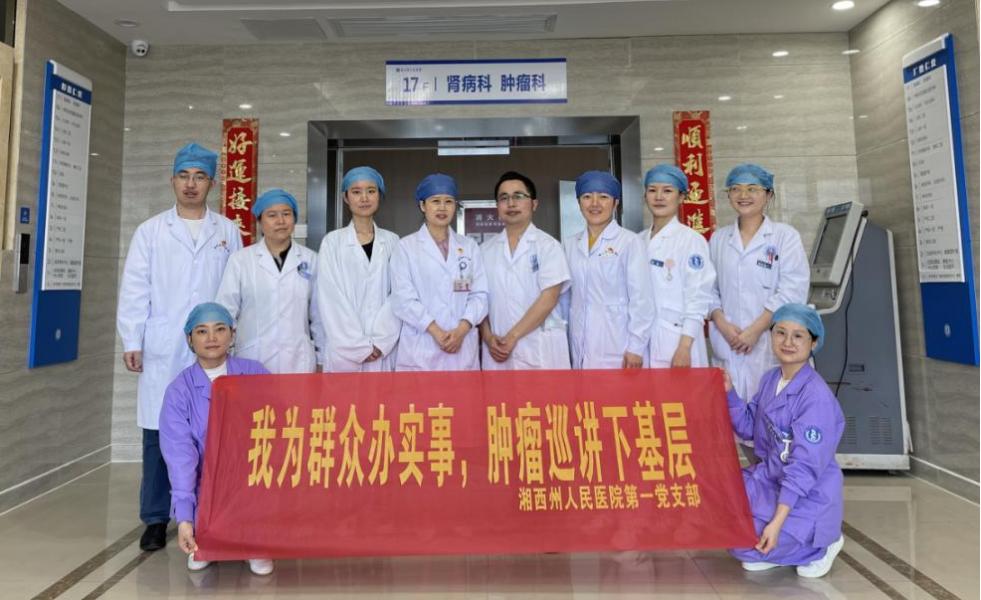 6月4日,第一党支部支部书记、肿瘤一科科主任向志碧带领医疗专家杨志及护士长到龙山县人民医院肿瘤科开展查房指导、肿瘤专科对接、学术讲座。