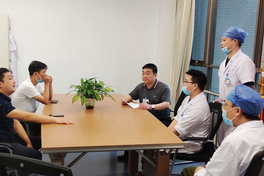 事后,院武装部负责人带领特勤队长、班长和事发科室的医护人员进行座谈,商讨医护人员的保护措施,以及突发事件的应急预案。