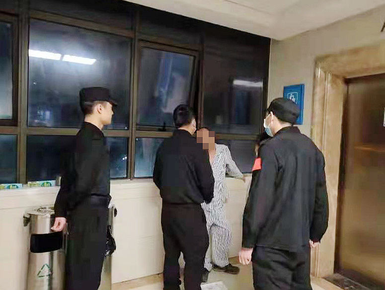 凌晨,内科一住院患者情绪不稳定且有自杀倾向,特勤队员赶到了解情况后,与患者及家属协商妥善处理。