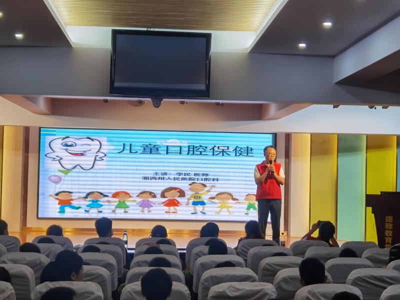 6月15日下午,州人民医院第十一党支部应邀到乾城德雅小学,开展“学史力行,我为群众办实事”专题教育实践活动暨“群众微心愿 党员帮你圆”为主题的儿童口腔保健知识培训,进行儿童口腔保健知识的宣传教育,手把手教学,为120名师生上了一堂实用的口腔保健知识技能课,增强口腔健康观念和自我口腔保健的意识。