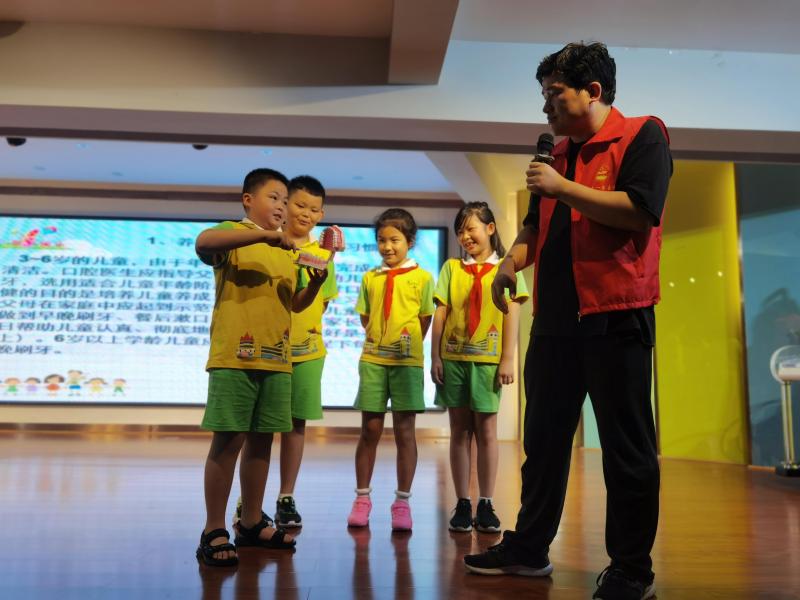 第十一党支部医护人员通过PPT、视频讲解模式为同学们讲解乳牙、恒牙作用以及最常见儿童牙病发生发展过程及预防方法,以现场示教和指导的模式为同学们讲解正确刷牙方法及最适宜的口腔保健知识。
