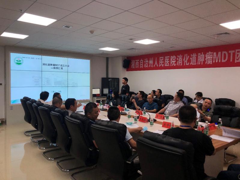 此次仪式由我院医务科科长贾浩、大外科主任兼胃肠外科主任杨闻晓、大内科主任兼肿瘤中心主任宋奎共同主持,普一科、普四科、消化内科、肿瘤科、病理科、CT室、磁共振室、放射科、麻醉科、超声诊断科等相关科室主任及副主任、骨干医师等参加。