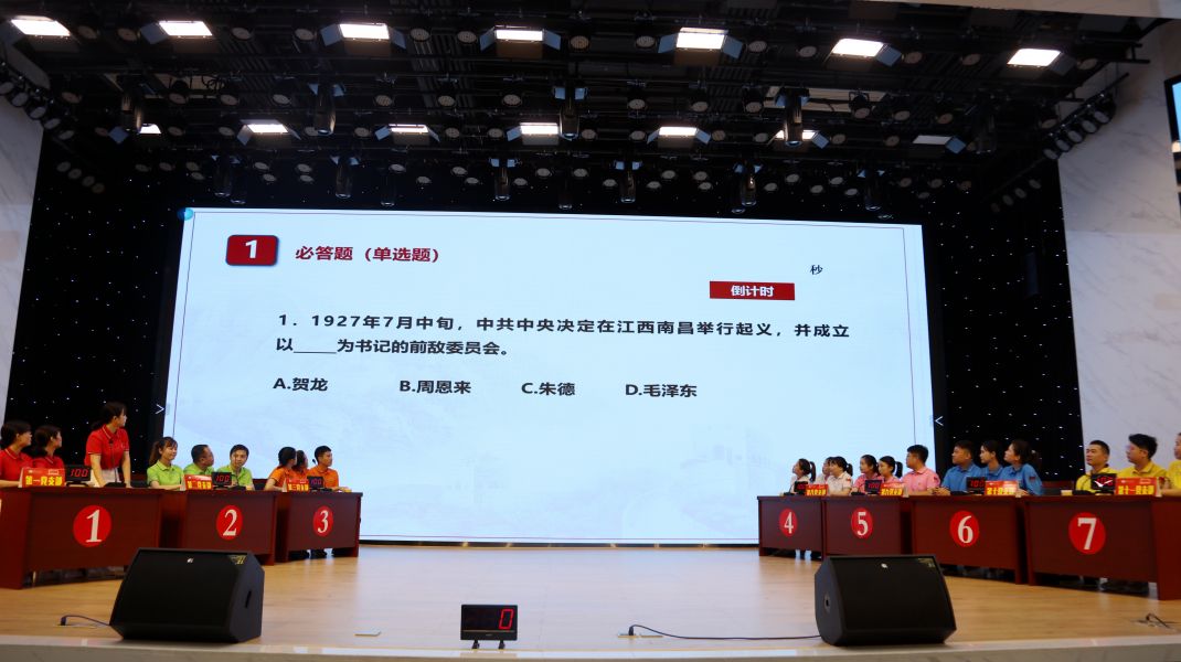 竞赛设置了必答题、抢答题、风险题和附加题,开展了现场互动答题和百人团手机线上答题,台上的选手们神采飞扬,现场观众们争先恐后,气氛十分热烈。经过激烈角逐,第一党支部夺得党史知识竞赛一等奖。