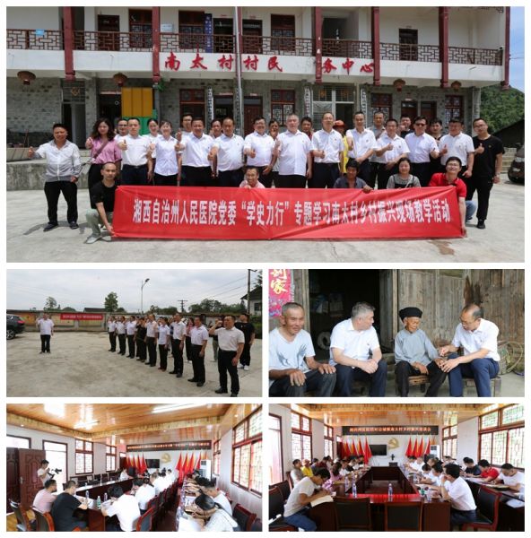 院党委坚持理论与实践相结合,力求知行合一。6月16日,院领导班子到花垣南太村开展中心组6月份集中学习暨党史学习教育“学史力行”专题研讨会及现场教学,进行实地调研并重温入党誓词,召开乡村振兴座谈会,共商南太村乡村振兴大计。