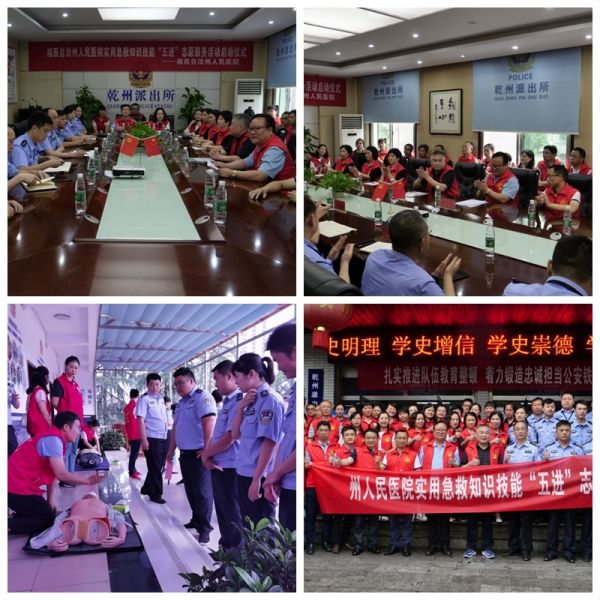 根据院党委《党史学习教育“我为群众办实事”主题实践活动推进工作方案》,各总支、支部、团委、相关科室深入开展“我为群众办实事”主题实践活动。6月11日,医院组织实用急救知识技能“五进”志愿服务活动启动仪式,40余名志愿服务者深入乾州派出所为全所干警开展心肺复苏步骤、体外自动除颤仪使用、气道异物梗阻急救等急救技能培训。深入校园、企业、社区、集市、农村开展了以第一目击者培训为主的“五进”志愿服务活动,帮助更多人掌握急救知识技能,规范施救,提高现场救护能力。