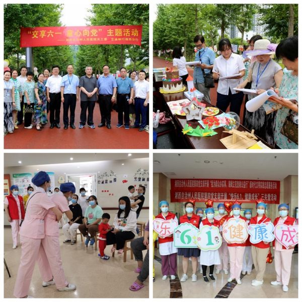 内科党总支、第四党支部、普五科结合庆“六一”关爱儿童主题,采取节目表演、趣味游戏、答题比赛、健康宣教等形式丰富活动开展。院关工委采取绘画、书法作品、手工品评选,发放纪念品等活动方式,与儿童们共享六一。