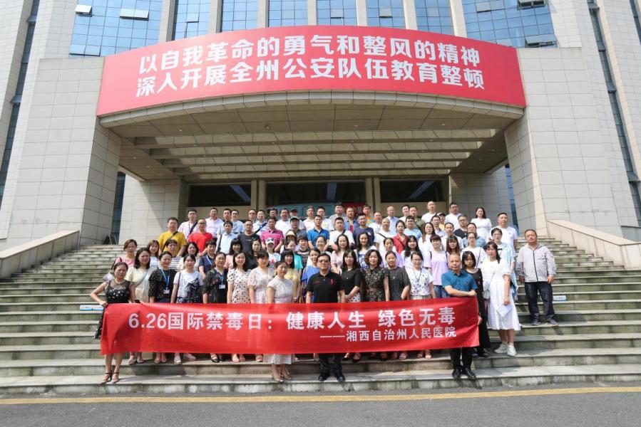 为进一步宣传毒品的危害,提高医院干部职工远离毒品、珍爱生命的意识,在“6·26”国际禁毒日到来之际,6月23日,州人民医院组织100余人到州公安局湘西毒品预防教育基地举行主题为“健康人生,绿色无毒”禁毒宣传活动,院工会主席江宏冰带队参观学习。