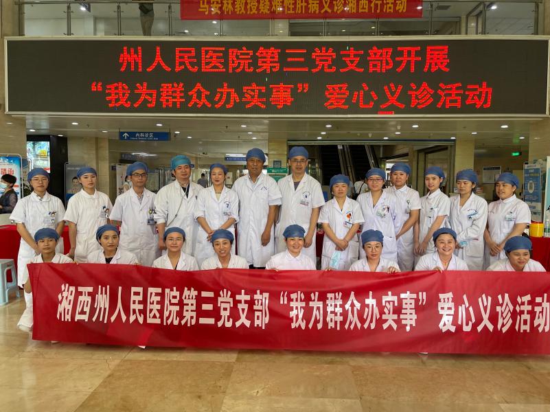 为帮助群众实现“微心愿”,切实提升党史学习教育成效,湘西州人民医院第三党支部积极为群众办实事解难题,组织感染科及消化二科党员干部及志愿者协助马安林教授在该院门诊大厅开展疑难肝病精医疗爱心义诊志愿服务活动。