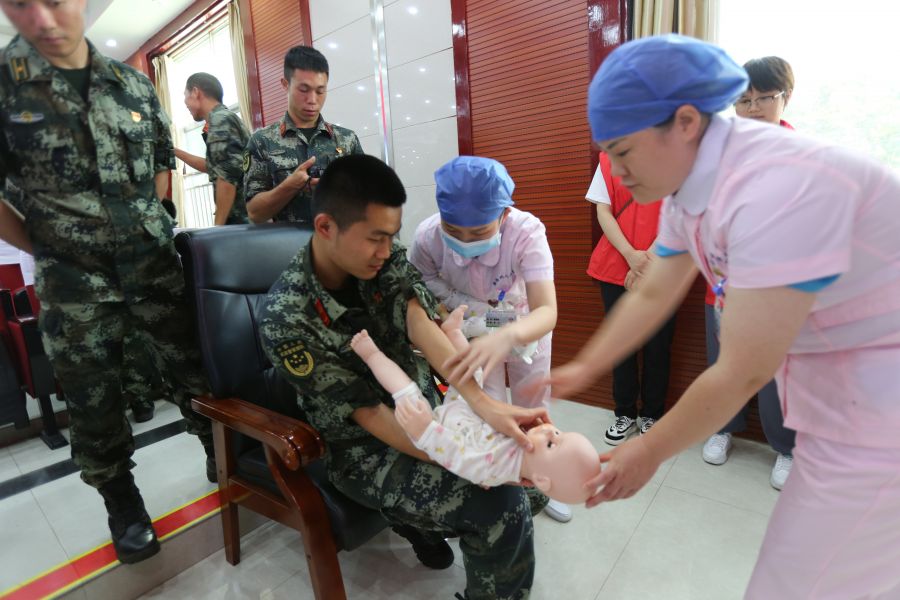 在“八一”建军节前夕,为提高武警官兵现场救护意识,提升现场救护知识与技能,倡导“人人会急救,急救为人人”的现场救护第一目击者行动理念, 根据院党委关于党史学习教育“我为群众办实事”主题实践活动推进工作方案,7月10日,州人民医院内科党总支、外科党总支、行管党总支部走进武警湘西支队开展“救在身边——第一目击者培训” 活动。