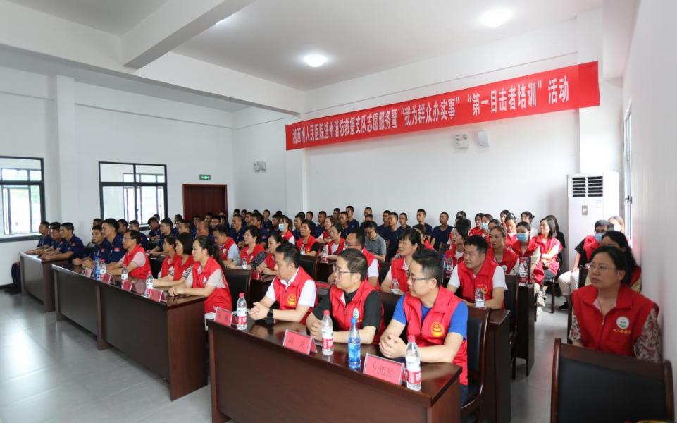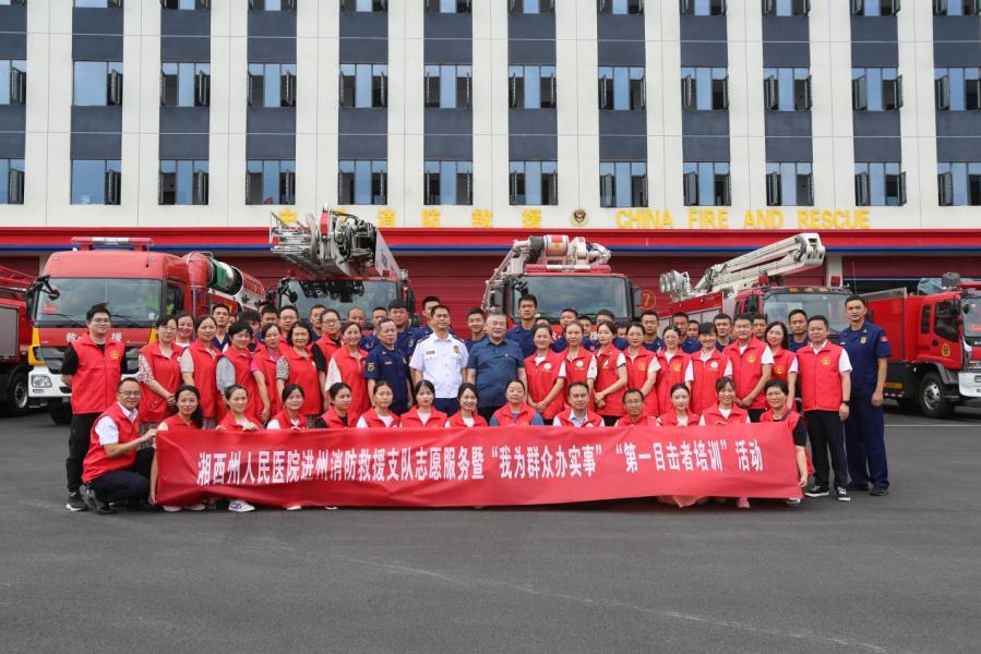 自党史学习教育开展以来,我院党委精心组织,丰富教育形式,围绕学党史、悟思想、办实事、开新局,通过“五进”活动,突出学习成果转化,用心用情为群众办实事。7月14日,我院“现场救护—第一目击者”志愿服务队由院党委书记彭剑涛带队,包括内科、外科、小儿科、重症医学科以及党办,行管、内外、儿科、门诊党总支和院团委相关负责人在内的40余名人员走进州消防救援支队为百余名消防指战员进行急救知识和技能的教学培训。