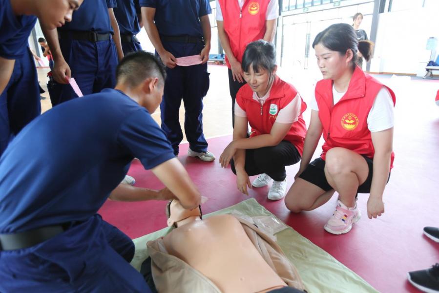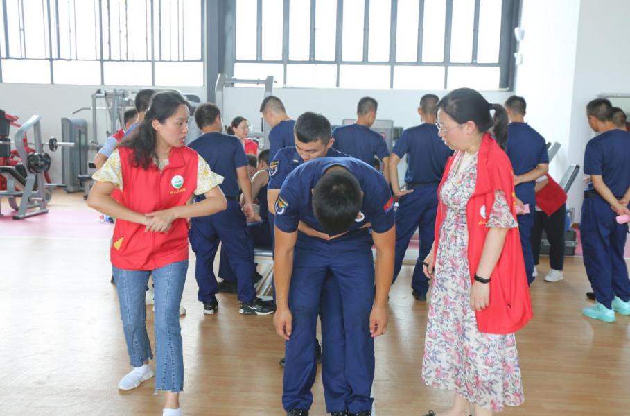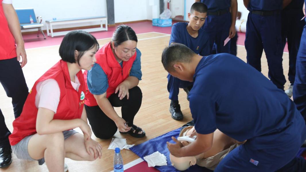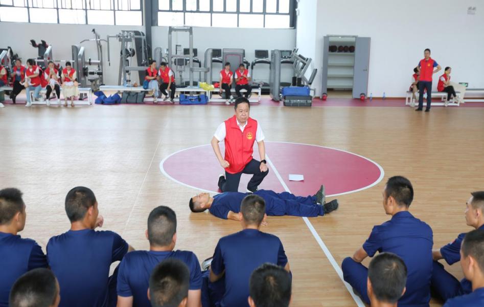 志愿者们结合消防指战员工作的特殊性,对常见的突发事件急救处理知识进行了深入浅出的讲解,手把手的指导队员们进行实践操作,为消防员进行了心肺复苏、气道异物梗阻、创伤的急救技能(止血、包扎、固定、搬运)的现场示范演练,使大家了解现场医疗急救的整个过程。