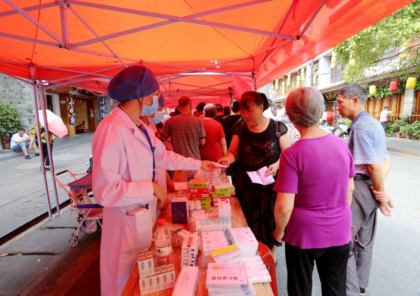 在凤凰虹桥路段,展台齐立、人头攒动、秩序井然,前来就诊的居民及游客们早早排起了长队等待。医护人员热情认真地为前来咨询的居民及游客进行测量血压、血糖,丙肝筛查,眼科疾病筛查,健康宣教,发放常用药品。感染科、呼吸科、重症医学科、儿科、眼科、消化科、结核病专家等现场坐诊,耐心解答关于相关病的预防诊治及愈后疑难问题。针对发现需要进一步检查治疗的患者,专家们提醒要到医院跟进检查,呼吁群众要养成健康的生活方式。