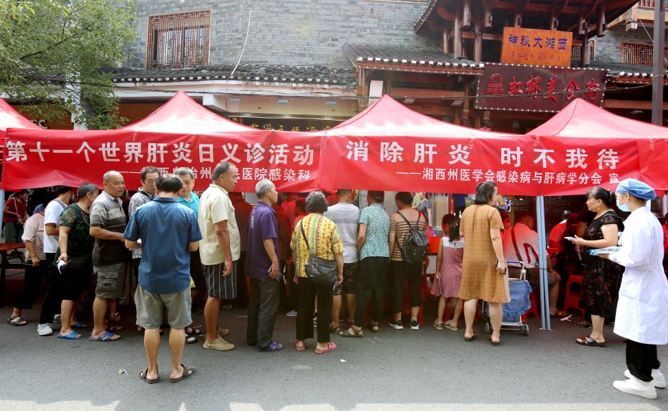 在第11个“世界肝炎日”来临之际,7月25日,湘西州人民医院第三党支部组织全体党员、志愿服务者走进凤凰县沙湾社区开展志愿服务暨“我为群众办实事”“微心愿服务送健康”“第一目击者培训”活动。