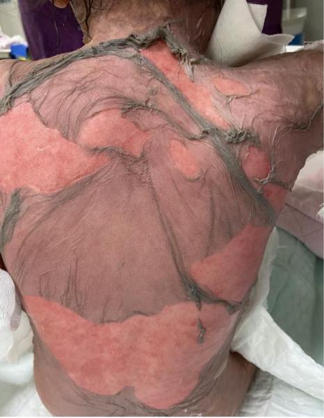 当日晚8点,患儿家长将汐汐(化名)送至我院,当时汐汐全身可见广泛红色皮疹、水疱、大疱,皮肤大片剥脱,渗液明显,口腔、会阴部皮肤已糜烂……如同全身被开水烫过一样,因病痛而发出微弱的呻吟。