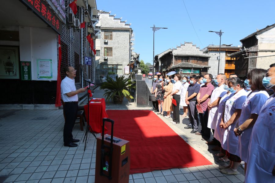 州人民医院院长黄纯海,院长办公室、医务部、科护士长、花垣县卫健局负责人,花垣县边城镇中心卫生院、麻栗场镇中心卫生院负责人及职能部门和相关科室出席揭牌仪式,共同见证区域医联体建设发展新篇章。