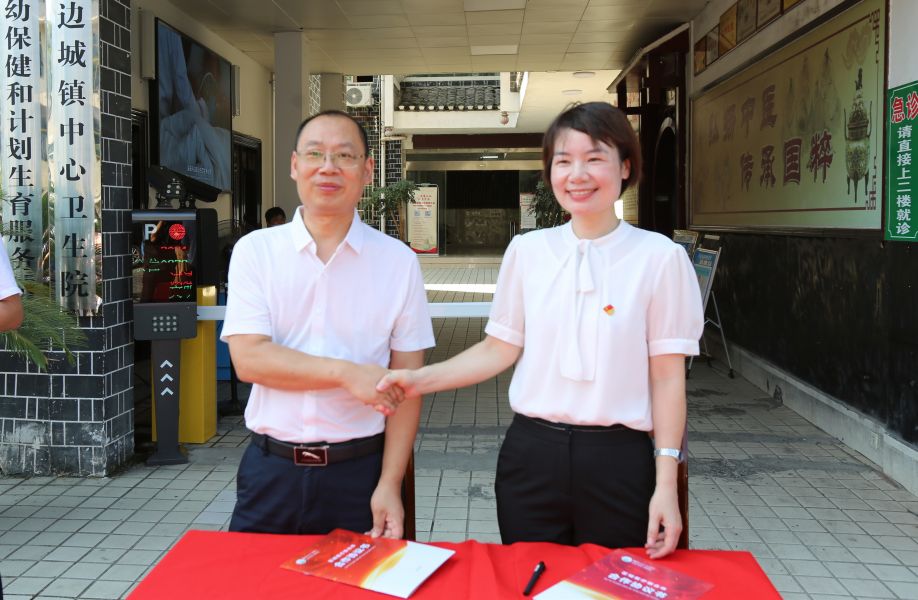 黄纯海院长与边城镇中心卫生院负责人签署合作协议