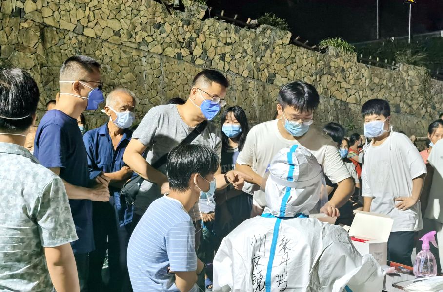 8月1日凌晨,暂时完成固定采集点的核酸采集工作后,趁着空挡,瘫坐在椅子上打个盹,为白天继续工作养精蓄锐。